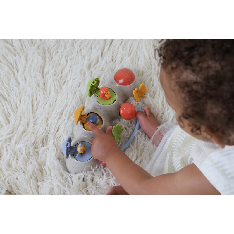 Tolo BIO Pop-Up mänguasi on kaasahaarav ja kergesti kasutatav. Mängu käigus jälgib laps, kuidas tegelased enda „pesadest“ välja hüppavad.