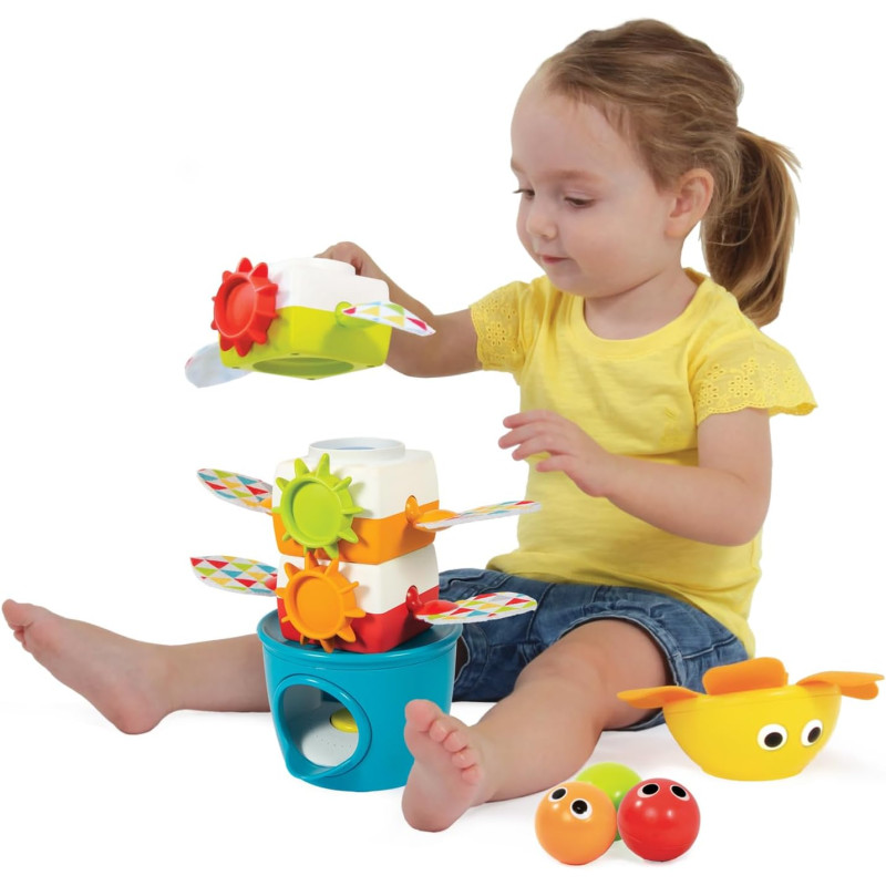 Näidake lapsele, kuidas kõristid torni keskelt läbi lasta. Kui pallikesed läbivad torni, hakkavad tiivad lehvima, mis pakub lapsele rohkelt rõõmu.