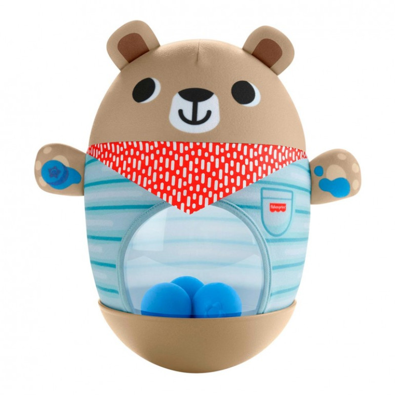 33 cm kõrgune täispuhutav karu, millel on vastupidav ja raskendatud alus, tänu millele hakkab see pärast iga tõuget kõikuma ning värvilised „mustikad“ hüppavad liikumise ajal selle sees. Pehme tekstuur ja kangast detailid kutsuvad last avastama, arendades katsumise kaudu tema sensoorseid oskusi.