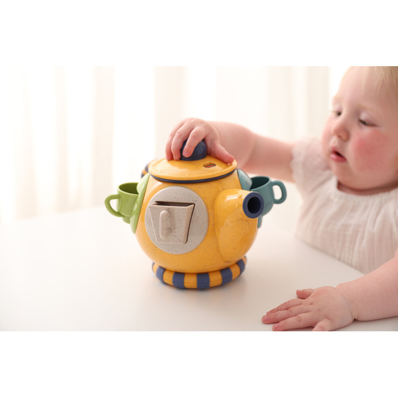 Komplekti kuulub 4 väikest teetassi, mis vastavad sorteeris olevate avade värvidele. Sorteeri kaas on kergesti eemaldatav. Mänguasja võib kasutada koos veega, kuid see ei ole mõeldud kuumade vedelike jaoks! Oluline on, et laps oleks veega mängides täiskasvanu järelevalve all.