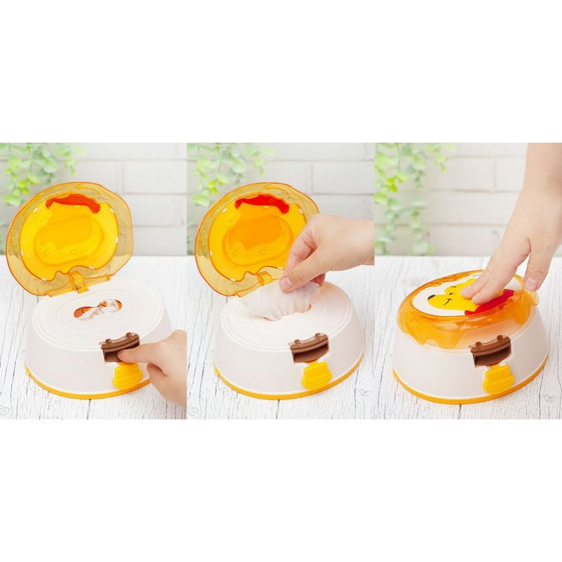 Armsa Karupoeg Puhhi kujundusega niiskete salvrättide konteiner.