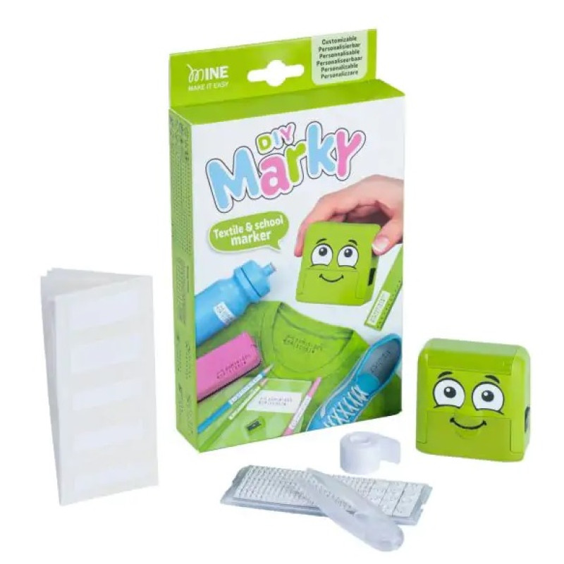 Marky – riiete ja asjade märgistamiseks. Unustage igaveseks kadunud või vahetusse läinud asjad! Marky tempel on toodetud Austrias ning komplektis on kõik, mida vajate – tempel ise, tähed, stiilsed piktogrammid, pintsetid, triigitav termolint tumedatele kangastele ja vastupidavad nõudepesumasinas kasutatavad kleebised.