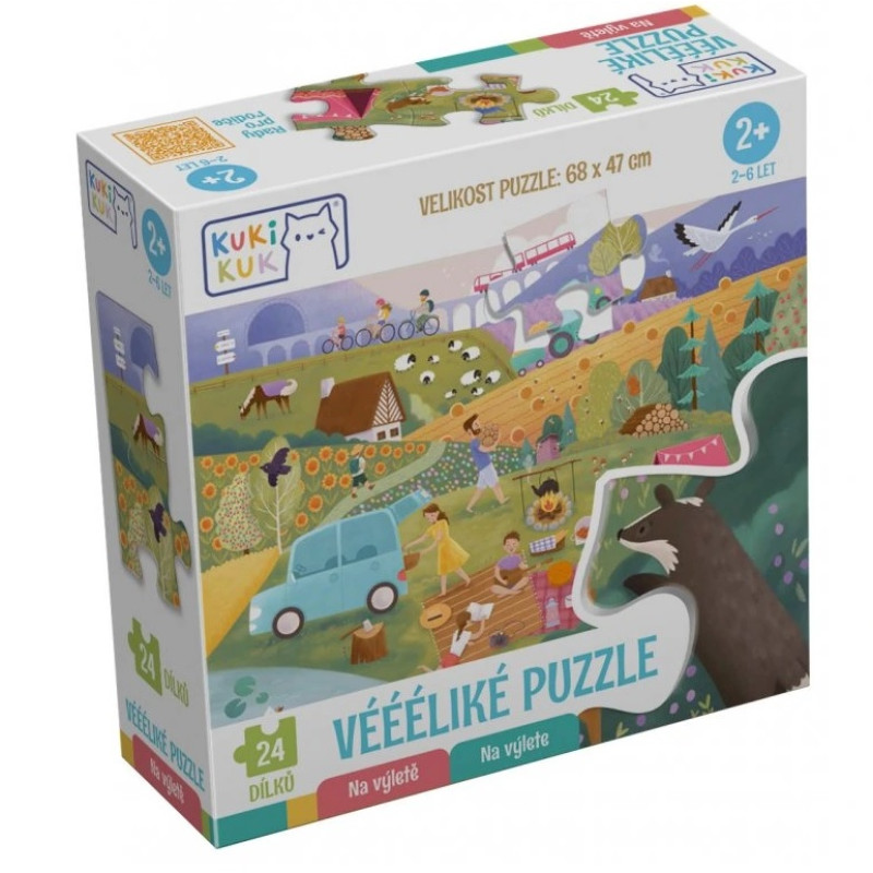 Komplekt sisaldab 24 suurt tükki, millest saab kokku panna värvika ja lõbusa pildi suurusega 675 × 470 mm.