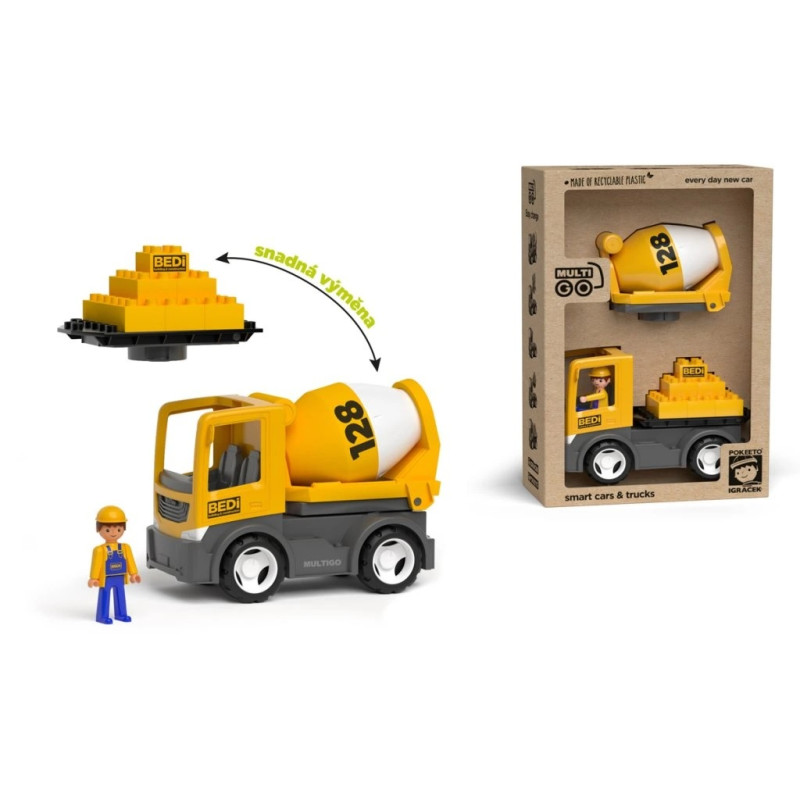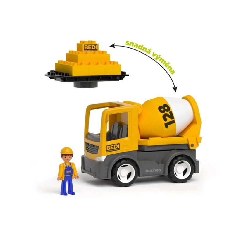 · 2 vahetatavat lisaseadet: betoonisegisti ja ehitusplatvorm kuubikutega