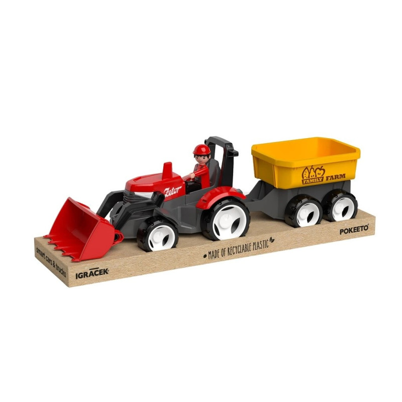 Ikoonilise punast värvi traktorist ja traktoristi kujukesest koosnev mängukomplekt rõõmustab kõiki väikeseid tehnikahuvilisi. Komplektis olev kujuke mahub ideaalselt traktori kabiini.