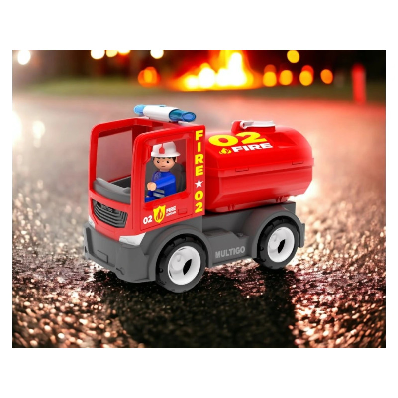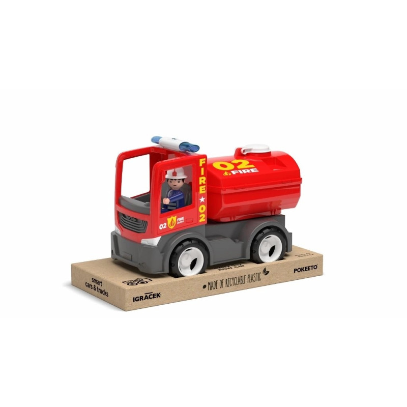 Paagiga tuletõrjeauto ja tuletõrjuja kujuke.