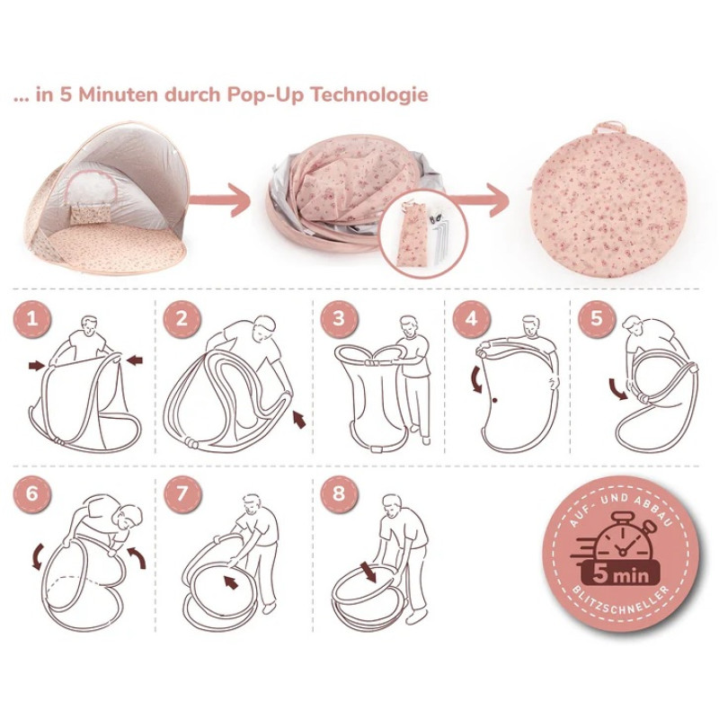 Selle püstipanek toimub vaid mõne sekundiga ning telk pakub kaitset nii päikese kui ka tuule eest.