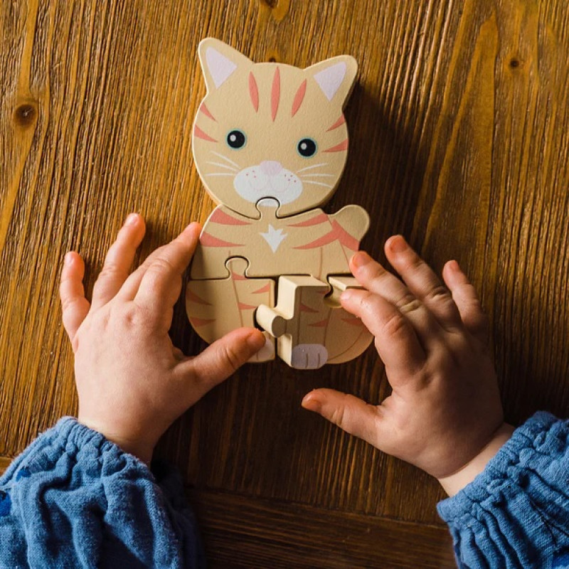 See suur puidust kassikujuline pusle sobib ideaalselt väikestele lastele. Pusle pakub rohkelt rõõmu selle kokkupanemisest.