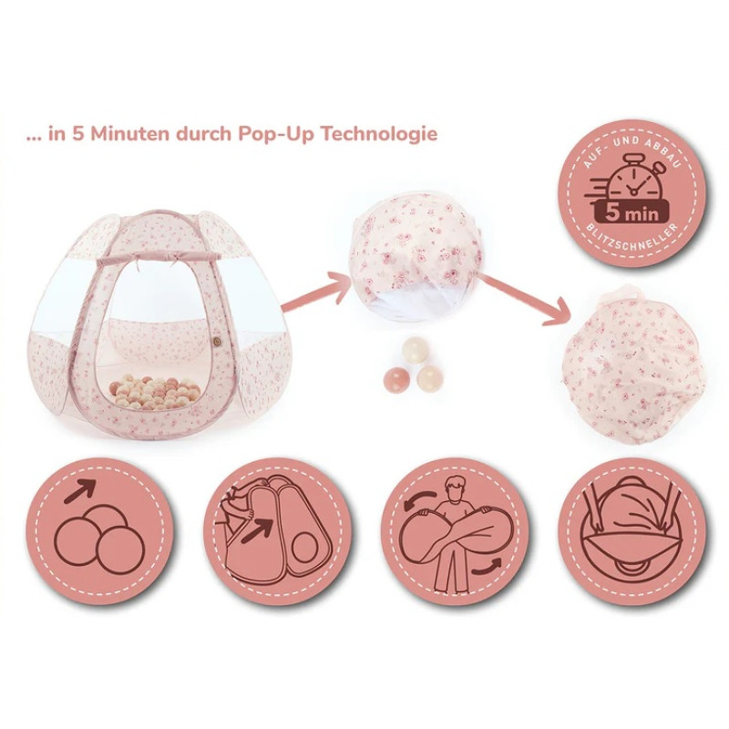 Mängutelk ja 50 palliga pallimeri kaks-ühes komplekt – ideaalne mängimiseks, müramiseks ja peitusemängu mängimiseks!