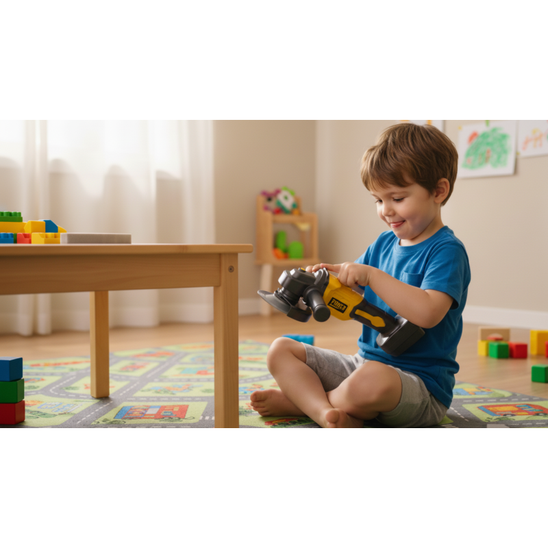 Mänguasi on valmistatud kvaliteetsest, vastupidavast ja mittetoksilisest plastikust, sellel on mugav käepide ning realistlikud valgus- ja heliefektid, mis loovad ehtsa tööriista tunde. Sisselülitamisel süttib valgus ja kostub tööriistale iseloomulik heli – laps tunneb end tõelise meistrina!