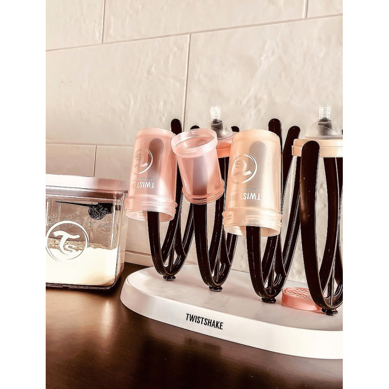 Twistshake pudelikuivatusrest aitab köögis säästa ruumi ja hoida korda. Elegantne ja kaasaegne disain sobitub harmooniliselt igasse köögiinterjööri. Avatud konstruktsioon tagab vaba õhuringluse, tänu millele kuivavad pudelid paremini, sealhulgas pudelite põhjad, kuhu sageli kipub vesi kogunema. Hoidikuid saab eemaldada, eraldi hoiustada ja kaasa võtta, mis muudab kuivatusresti kasutamise veelgi mugavamaks.